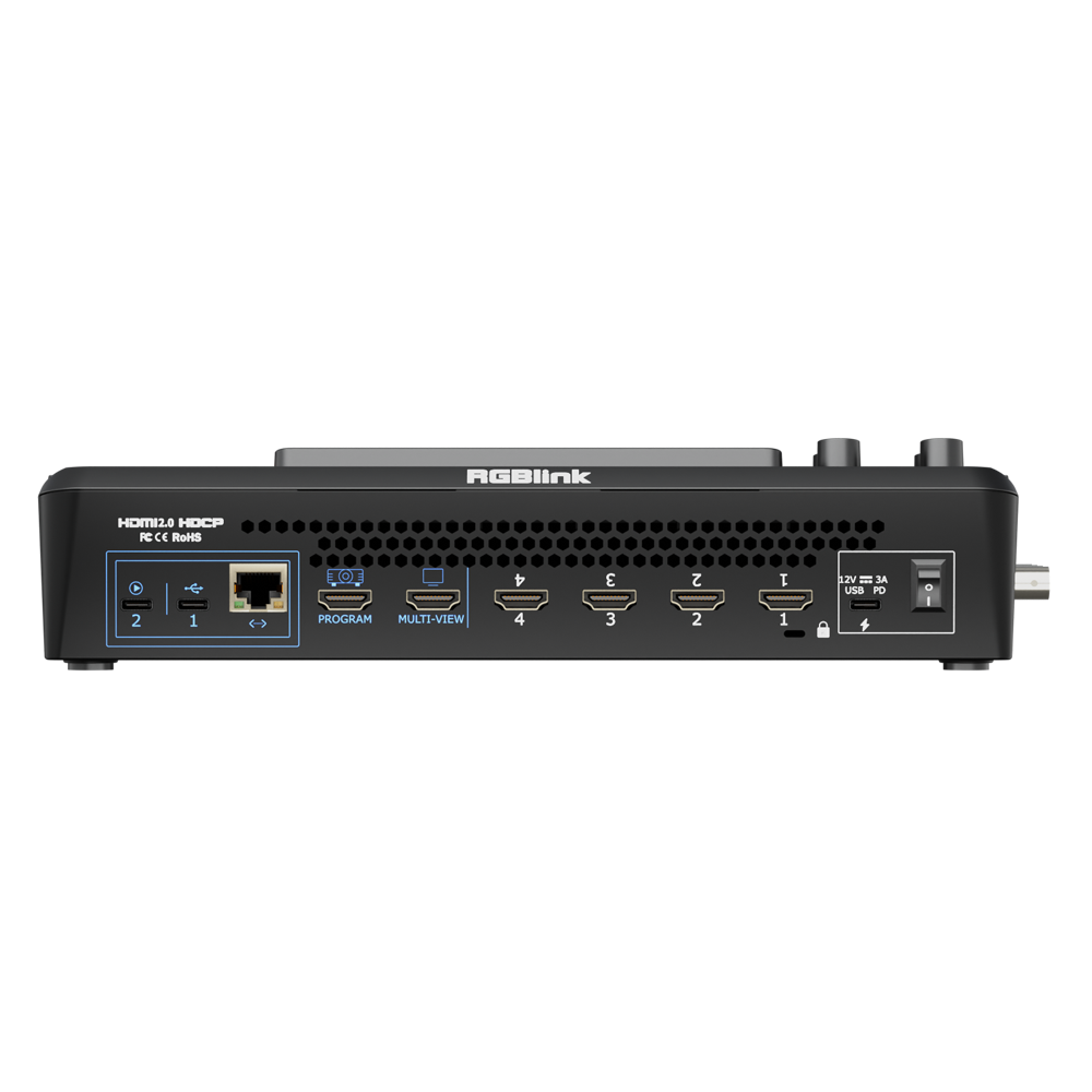 There are two separate HDMI outputs for multi-viewer Preview, Program or Test Pattern. One USB 3.0 output supports YUY2 and MJPEG capture formats, which can be recognized as a webcam for streaming to Facebook, YouTube, ZOOM, etc.