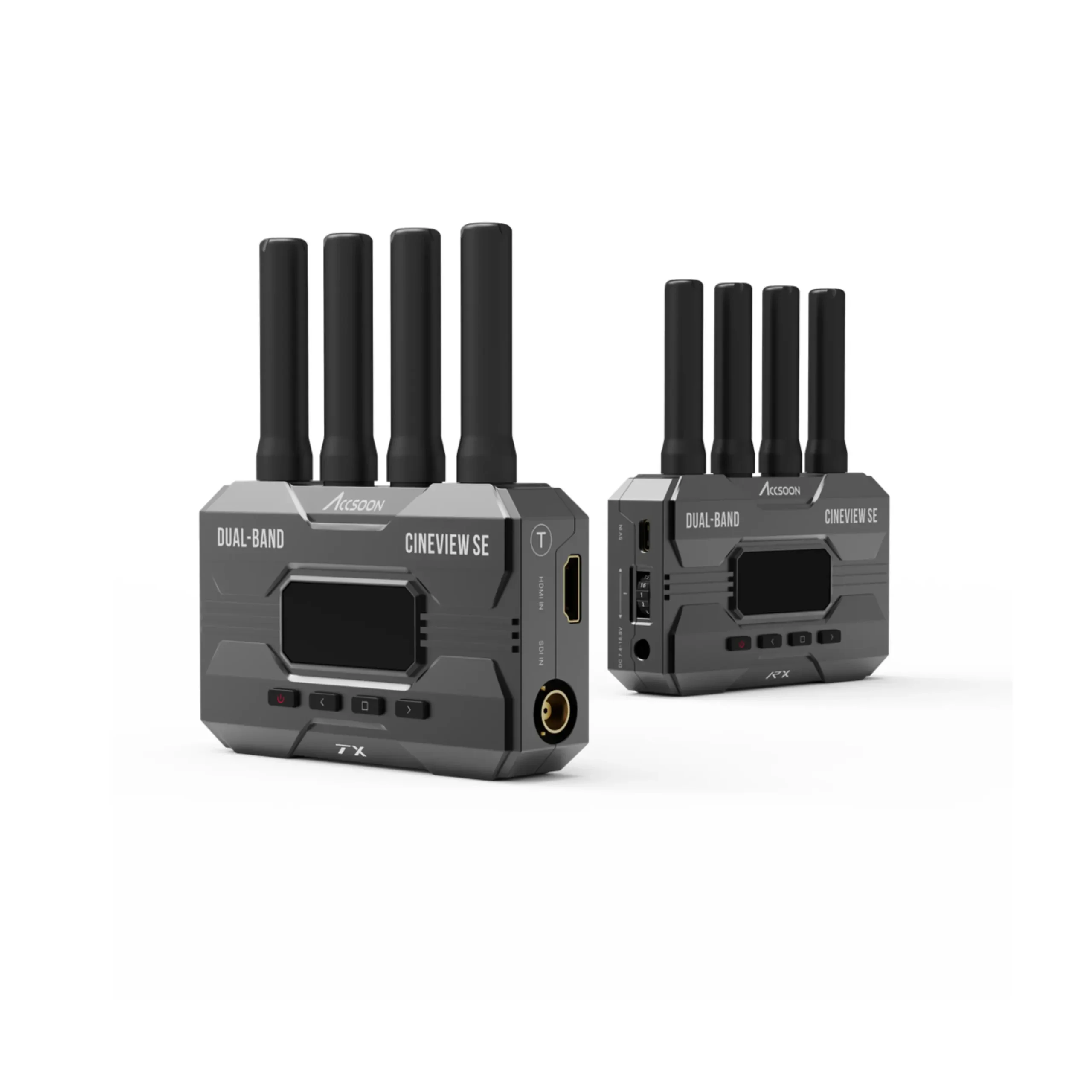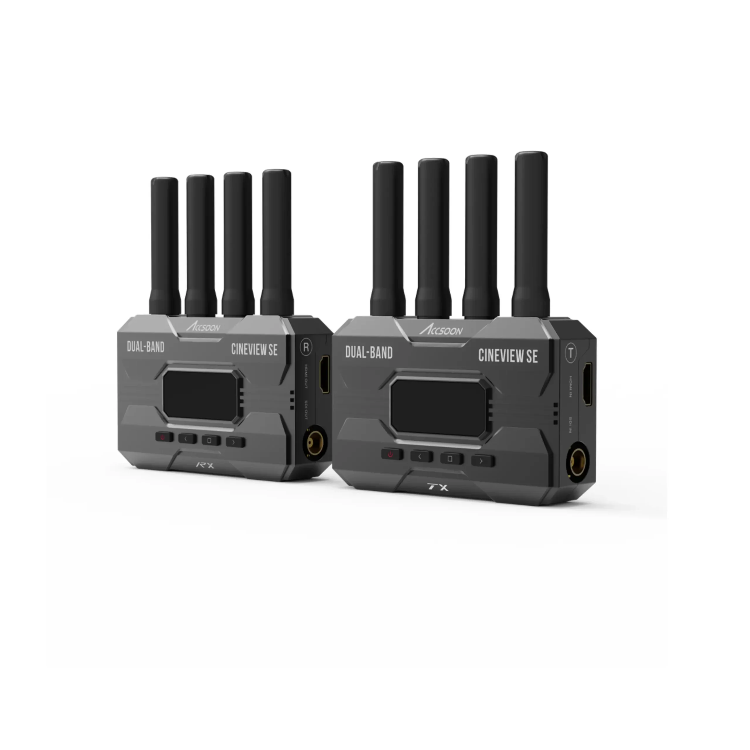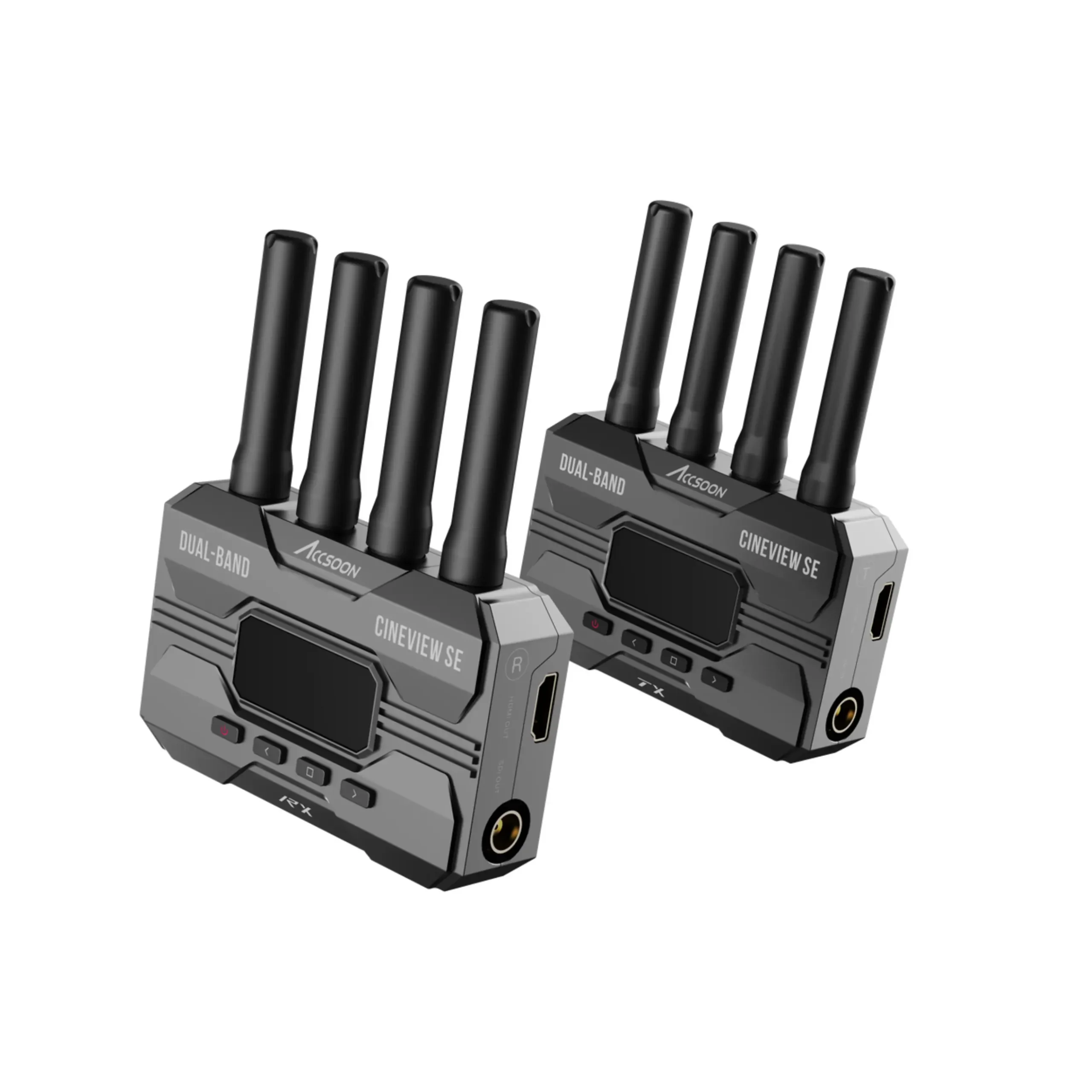 The CineView SE is a wireless video transmitter and receiver, with new best in class latency at under 50ms, the CineView SE can transmit a video source via SDI & HDMI up to 1080p 60fps inputs/outputs. It transmits the signal on 2.4GHz+5GHz Dual-Band frequencies simultaneously for increased signal stability and sends video at an impressive maximum range of 1200ft line-of-sight.